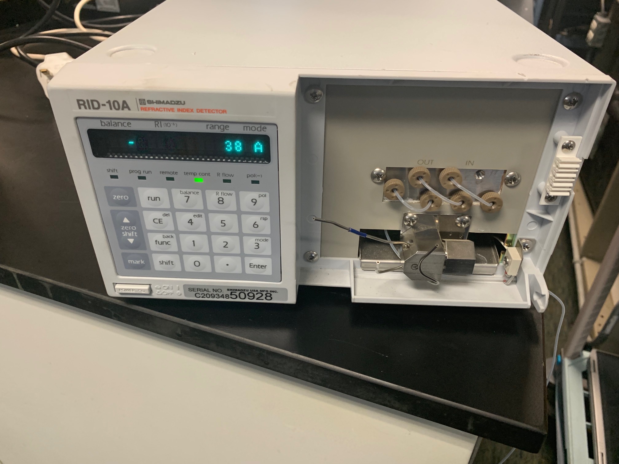 We also have refractive index detectors where the refractive index of the circulating liquid is compared to a reference liquid.