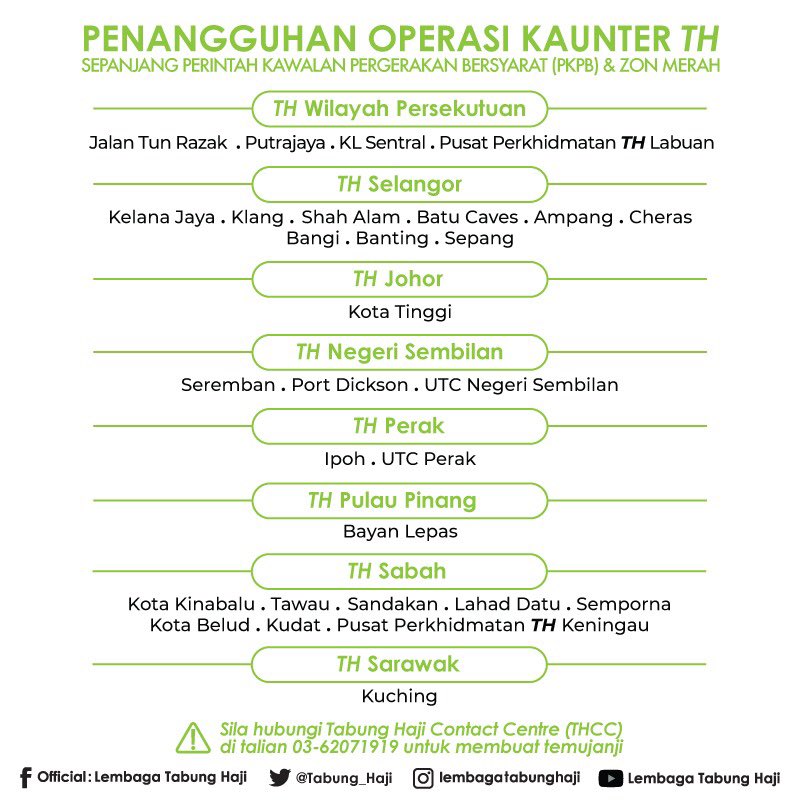 Lembaga tabung haji (th) masih menunggu bagi operasi haji tanah air, persiapan awal sudah diperkukuhkan dengan mengambil kira amalan normal. Waktu operasi cawangan berikut adalah seperti di bawah sepanjang perintah kawalan pergerakan (restrictive movement order). Lembaga tabung haji (malay jawi: Pelanggan adalah disarankan membuat temujanji terlebih dahulu sekiranya perlu membuka akaun. Tabung haji ni jarang popular.