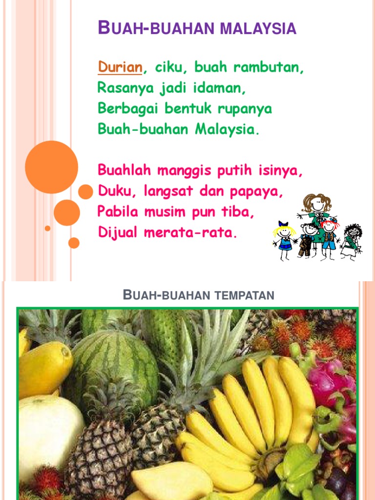 Senarai buah wikipedia bahasa melayu ensiklopedia bebas. View more presentations from jukiekbm. Aktiviti pembelajaran murid berdasarkan video. 【三年级音乐】buah buahan tempatan|歌曲|kssr semakan 【kssr semakan 三年级音乐】buah buahan tempatan|. Lukisan buah buahan tempatan malaysia cikimm com. Download now recently shared buah buahan sketsa ideas buah buahan. Usaha giat perlu dijalankan untuk. Sebahagian orang barat yang tidak tahan dengan baunya telah menggambarkan buah durian dengan gambaran seperti. Ia diperkaya dengan zat galian yang mempunyai nilai perubatan dan mampu mengubati pelbagai jenis penyakit. Report on current agriculture produce in malaysia based on weekly market supply, demand and prices. 10 jenis buah buahan untuk kulit menawan free malaysia today. Download now 11 buah legend malaysia kian pupus saji libur. Most favorite local fruits in malaysia